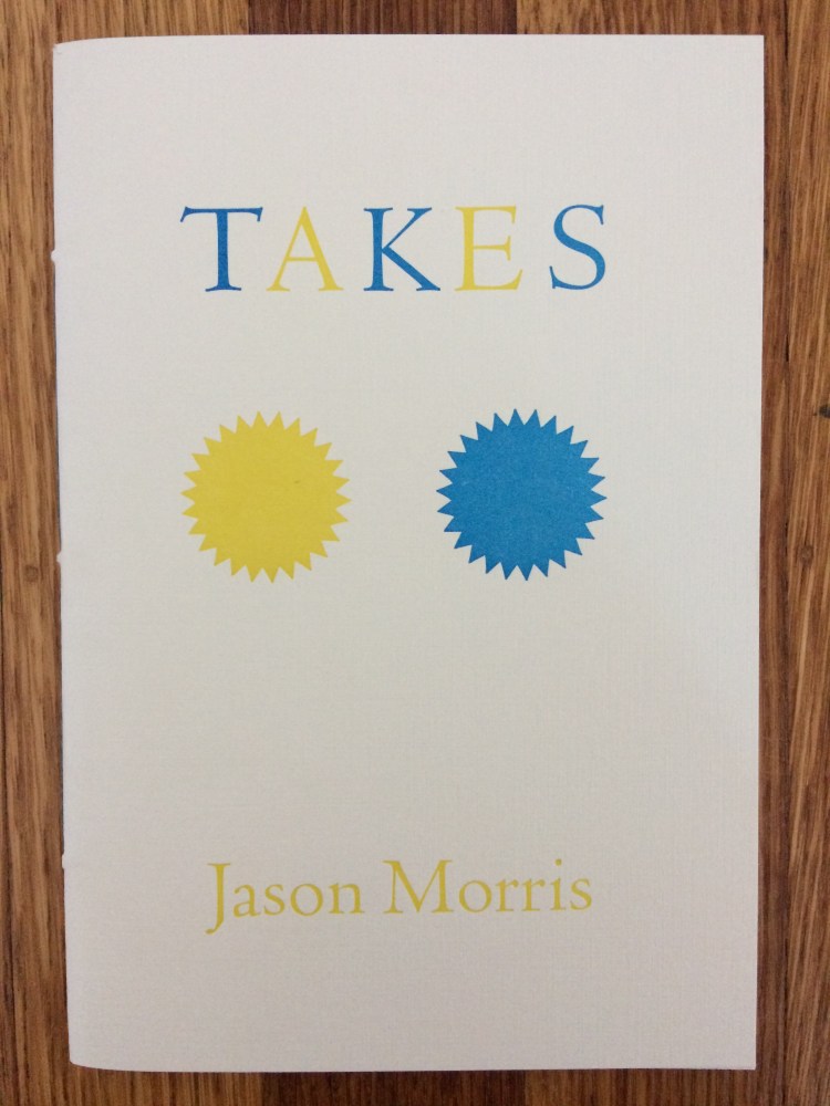 takes, by jason morris (bootstrap press) designed in collaboration with the author and publisher, printed at impart ink